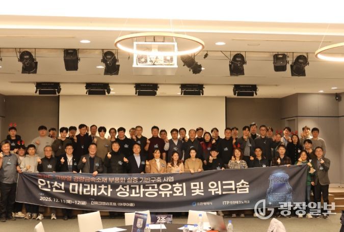 광장일보 주재영 기자 | 인천테크노파크(인천TP)는 지난 11일부터 12일까지 인천 중구 더위크앤 리조트에서 ‘2025 고강도·고방열 경량금속소재 인천 미래차 성과공유회 및 워크숍’을 성황리에 마쳤다고 밝혔다.