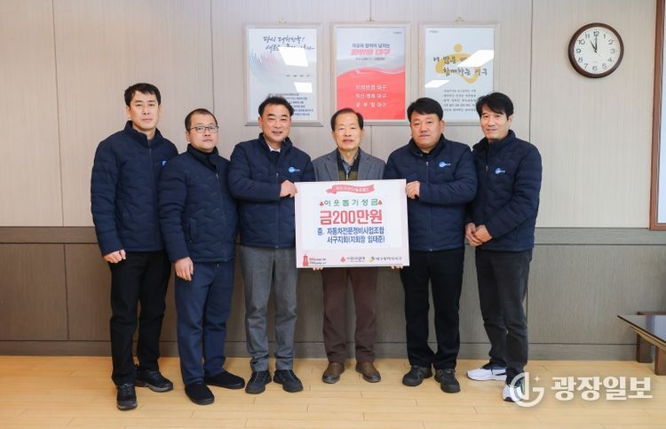 광장일보 주재영 기자 | 대구광역시 자동차전문정비사업조합 서구지회(지회장 임태준)는 지난 12일 서구청을 방문해 어려운 이웃을 위한 성금 200만 원을 기탁했다.