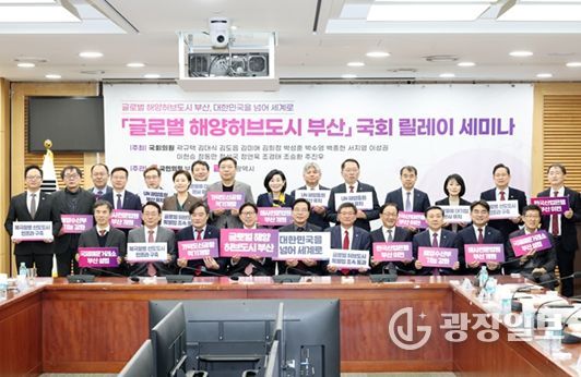 광장일보 주재영 기자 | 부산시는 오늘(17일) 오후 1시 30분 국회의원회관 제2소회의실에서 '글로벌 해양허브도시 부산' 국회 릴레이 세미나 2회차를 열고, '글로벌 해양허브도시 부산' 조성을 위한 공간 및 인프라 혁신 전략에 대해 논의한다고 밝혔다.