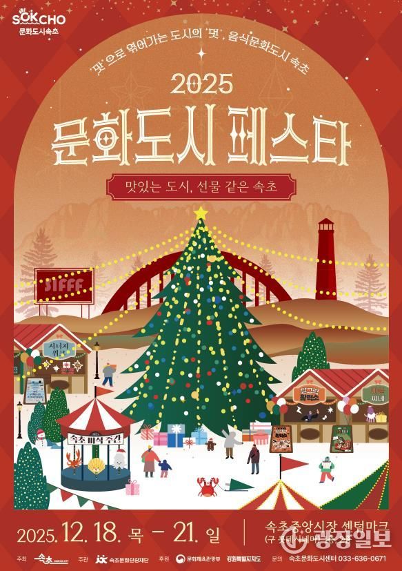 광장일보 이현나 기자 | (재)속초문화관광재단은 속초시의 대한민국 문화도시 1년 차 사업을 마무리하며 오는 12월 18일부터 21일까지 4일간 속초중앙시장 센텀마크(구 롯데시네마) 에서 대한민국 문화도시 성과공유회‘2025 문화도시 페스타’를 개최한다.