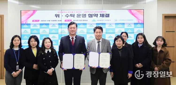 광장일보 주재영 기자 | 인천 미추홀구는 지난 16일 구청장실에서 인하대학교 산학협력단(단장 김동욱)과 미추홀구 어린이·사회복지급식관리지원센터 위수탁 운영 협약을 체결했다.