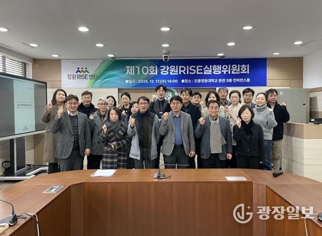 광장일보 이현나 기자 | 강원라이즈(RISE)센터는 2025년 12월 17일, 강릉영동대학교 본관 3층 컨퍼런스룸에서 ‘제10회 강원라이즈(RISE) 실행위원회’를 개최했다.