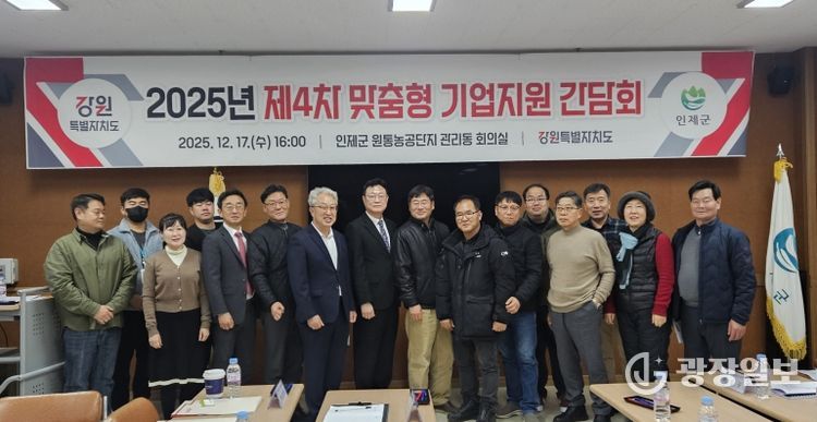 광장일보 이현나 기자 | 인제군은 지난 17일 원통농공단지 관리동 회의실에서 ‘2025년 맞춤형 기업지원 간담회’를 개최했다.