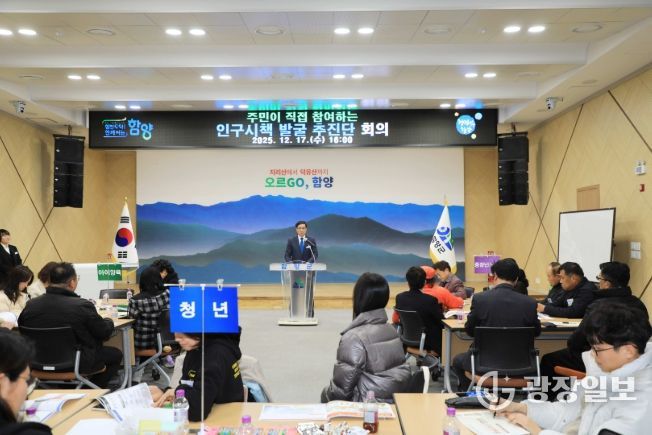 광장일보 주재영 기자 | 함양군은 17일 오후 4시 군청 대회의실에서 저출생, 고령화, 청년 유출 등 당면한 인구감소 문제의 해법을 모색하기 위한 ‘주민이 직접 참여하는 인구시책 발굴 추진단’을 운영했다.