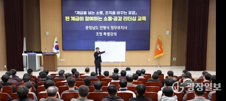 광장일보 주재영 기자 | 충남소방본부는 18일 충청소방학교 대강당에서 전 계급이 함께하는 ‘소통·공감 리더십 교육’을 진행했다.