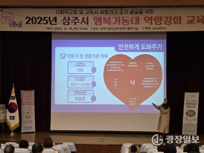 광장일보 주재영 기자 | 상주시는 12월 18일 상주시청소년수련관 세미나실에서 읍면동 행복기동대원 150여 명이 참석한 가운데 2025년 행복기동대 역량강화 교육을 실시했다.