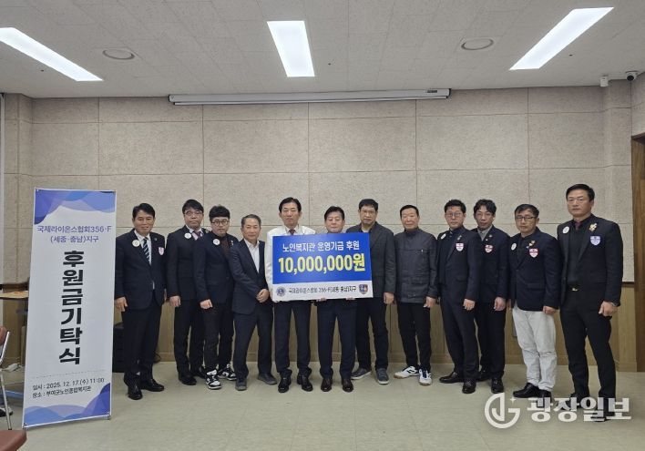 광장일보 주재영 기자 | 부여군노인종합복지관(관장 원종찬)은 지역 어르신 복지 증진을 위해 국제라이온스협회 356-F (세종·충남)지구가 후원금 1천만 원을 기탁했다고 19일 밝혔다.