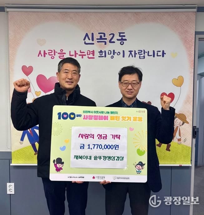 광장일보 주재영 기자 | 의정부시 신곡2동주민센터는 12월 18일 재복이네 솥뚜껑생삼겹살이 하루 매출액 177만 원을 기탁했다고 밝혔다.