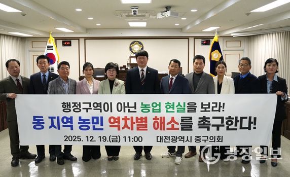 유은희 의원은 “2024년 기준 대전광역시에 농업경영체로 등록된 농업인은 약 2만 9천여 명이며, 이 가운데 중구에는 약 4천 3백여 명의 농업인이 있다”며, “이는 비슷한 규모의 자치구인 동구나 대덕구보다도 많은 수치임에도, 행정구역이 ‘동’이라는 이유로 각종 농업·농촌 정책에서 소외되고 있다”고 지적했다.