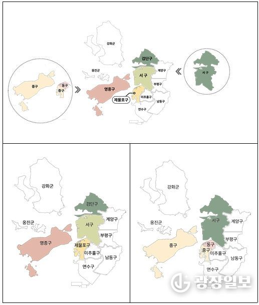 인천형 행정체제 개편은 현재의 중구와 동구를 ‘제물포구’와 ‘영종구’로 통합·조정하고, 서구에서 ‘검단구’를 분리하는 것으로, 인천의 행정체제를 기존 2군·8구에서 2군·9구로 확대하는 사업이다.