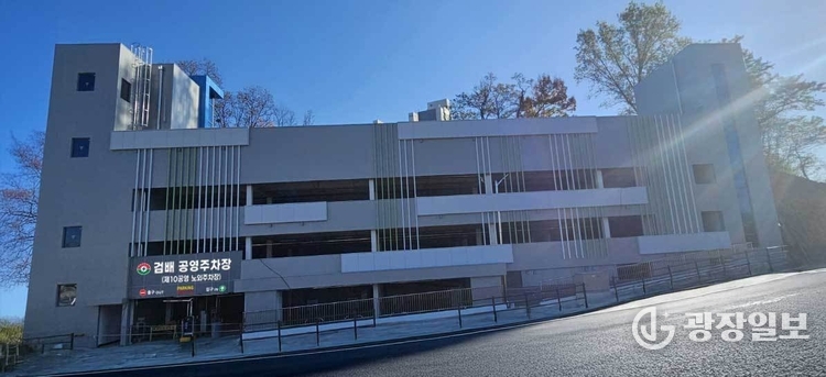 검배 공영주차장은 대지면적 1,507㎡에 지하 3층·지상 1층 규모로 조성됐으며, 총 97면의 주차 공간을 갖췄다. 총사업비는 121억 원이 투입됐다. 특히 지상 1층을 기존 공원과 연계한 친환경 공간으로 조성한 것이 특징이다.