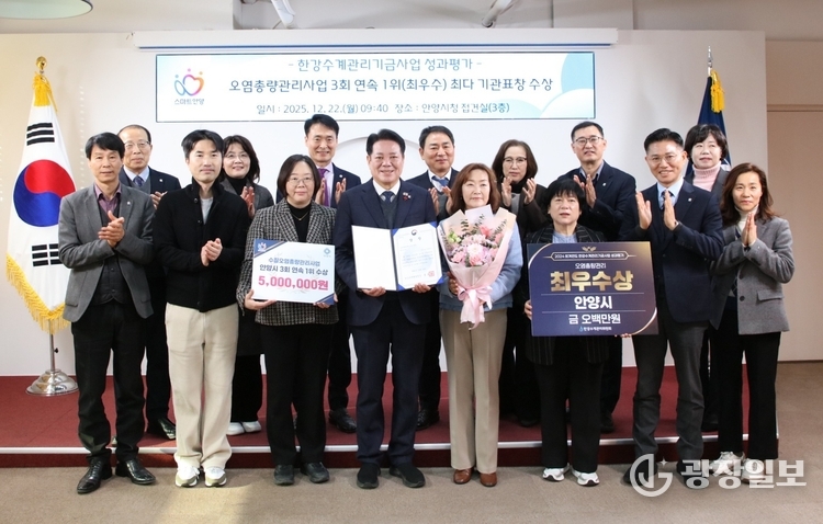 안양시는 한강유역환경청이 실시한 ‘2024 회계연도 한강수계관리기금사업 성과평가’에서 한강수계 관리청 34곳 가운데 오염총량관리사업 분야 1위를 차지했다고 22일 밝혔다. 이는 2020·2022 회계연도에 이어 관리청 최초의 3회 연속 1위이자 최다 1위 기록이다.