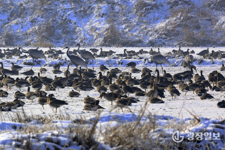 2021년 국내 24번째 람사르습지로 등록된 장항습지는 도심과 인접한 수도권 최대 철새 도래지다. 재두루미와 개리, 저어새 등 멸종위기종 33종과 천연기념물 24종, 해양보호생물 5종이 확인된 이곳은 2019년 동아시아-대양주 철새이동경로 파트너십(EAAFP)에 등재되며 철새 기착지로의 국제적 생태 가치를 인정받았다.