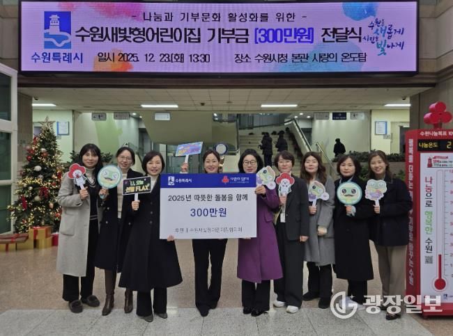수원새빛형어린이집협의회는 연말을 맞아 회원들의 뜻을 모아 이번 기부를 했다. 성금은 경기도사회복지공동모금회에 기탁돼 도움이 필요한 취약계층 지원에 사용될 예정이다.