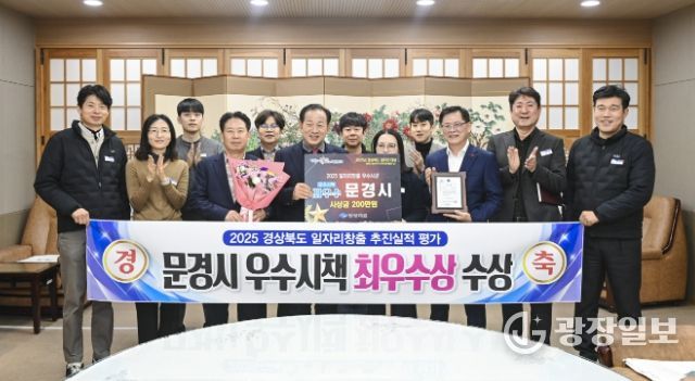 광장일보 주재영 기자 | 문경시는 23일 안동 그랜드호텔에서 열린 ‘2025년 경상북도 일자리창출 추진실적 평가’에서 작년에 이어 2년 연속 우수시책 부문 최우수상을 수상하는 쾌거를 올렸다.