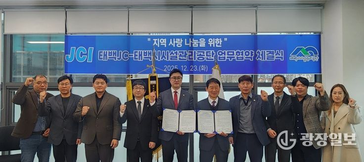 광장일보 이현나 기자 | 태백시시설관리공단과 태백JC는 지난 23일 태백시시설관리공단에서 ‘지역 사랑 나눔을 위한 업무협약(MOU)’을 체결했다.