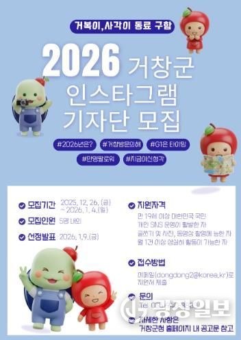 광장일보 주재영 기자 | 거창군은 지역 관광자원의 매력을 생생하게 전달하고 온라인 홍보를 강화하기 위해 ‘2026년 거창군 인스타그램 기자단’을 모집한다고 26일 밝혔다.