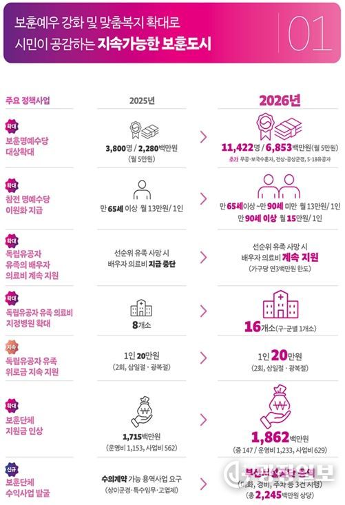 시는 2026년을 '부산 보훈의 원년'으로 설정하고, 보훈 예산을 전년 대비 대폭 확대한 410억 원 규모로 편성했다.