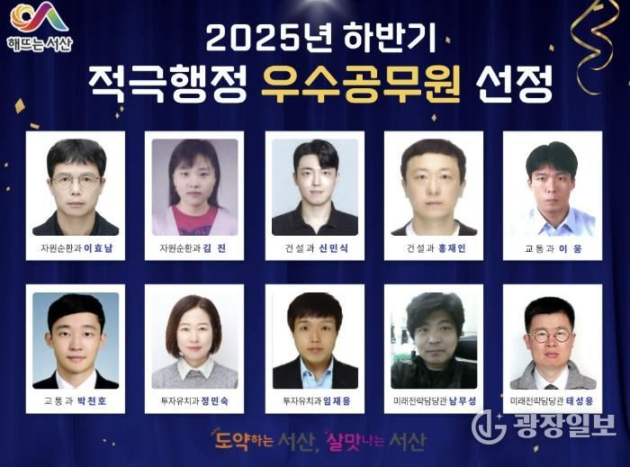 광장일보 주재영 기자 | 충남 서산시는 2025년 하반기 적극행정 우수사례 5건과 이를 추진한 우수공무원 10명을 선정했다고 밝혔다.