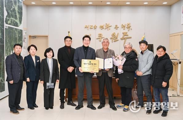 광장일보 이현나 기자 | 원주시는 제1호 농특산물 명인으로 이병동 씨를 선정하고, 지난 26일 명인 인증서와 인증패를 전달했다.