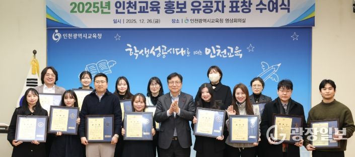 광장일보 주재영 기자 | 인천광역시교육청은 한 해 동안 인천교육 현장의 생생한 모습을 홍보한 유공자들의 노고를 격려하는‘2025년 인천교육 홍보 유공자 표창 수여식’을 26일 개최했다.