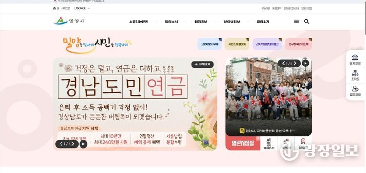 광장일보 주재영 기자 | 밀양시는 지난 26일 오후 시민의 정보 접근성과 이용 편의 향상을 위해 밀양시 대표 누리집(홈페이지)을 부분 개편했다.