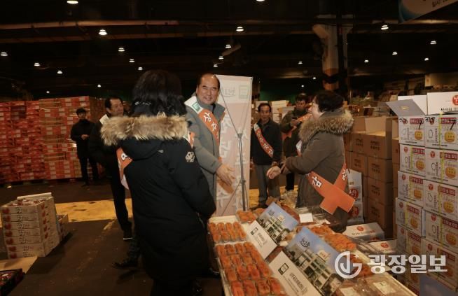 광장일보 주재영 기자 | 상주곶감유통센터에서는 2025. 12. 29. 03:00시 서울 가락동 농산물도매시장에서 상주곶감의 도매시장 계통 출하 및 상주곶감을 홍보하는 전시판매 홍보행사를 가졌다.