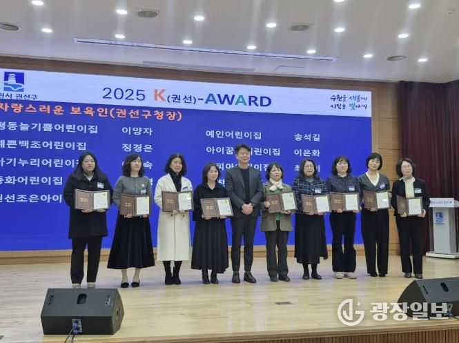광장일보 나학천 기자 | 권선구는 지난 29일, 어려운 여건 속에서도 헌신적으로 봉사해 온 어린이집보육교직원의 사기 진작을 위해 ‘자랑스러운 보육인’ 10명을 선정하여 권선구청장 표창을 수여했다.