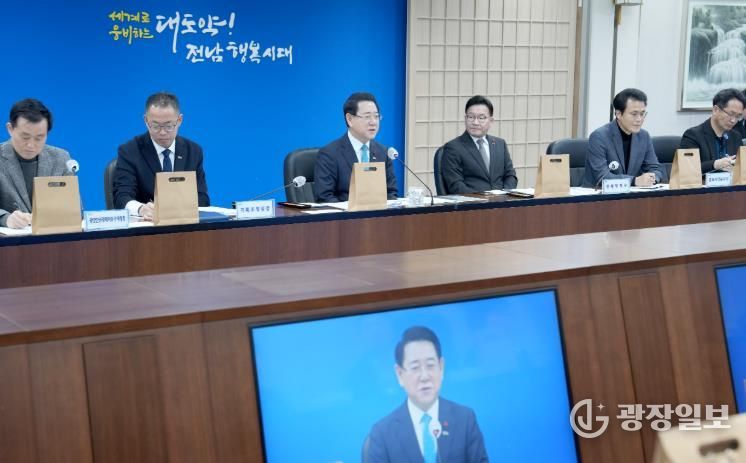 김영록 지사는 이날 오전 도청 서재필실에서 2025년 마지막 실국 정책회의를 열어 “정부가 통합에 과감한 인센티브를 주겠다고 하므로, 여건이 되면 특별자치도가 아니고 바로 대통합으로 갈 수도 있을 것”이라며 새해 화두로 AI·에너지 시대 광주·전남 대부흥을 위한 행정통합을 제시했다.