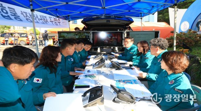 아울러 올해 초 발생한 대형 산불과 광범위한 주민 대피 상황을 반영해 실제 이재민 임시주거시설인 동산초등학교 강당을 훈련 장소로 지정하고, 훈련 참여 주민을 대피시키는 방식으로 대한적십자사의 이재민 대피소 제공과 심리활동가 심리상담 지원 등 구호 활동을 실제로 체험하는 등 구청의 실질적 역할 수행에 중점을 두어 훈련을 진행했다.