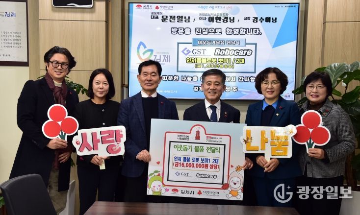 광장일보 주재영 기자 | 김제시는 GST 계열사 로보케어(대표 문전일)가 30일 탁상형 인지돌봄 로봇 ‘보미1’ 2대(약 1,600만 원 상당)를 기부했다고 밝혔다.