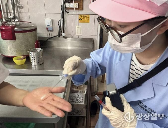 이번 사업은 급식 현장의 위생 상태를 과학적으로 분석하고 시설별 관리 수준에 맞춘 교육과 개선 방안을 제공하기 위해 마련됐으며, 센터는 조리원의 개인위생과 조리도구 표면 오염도를 ATP(간이오염도) 측정을 통해 모니터링하고 조리 과정에서 발생할 수 있는 교차 오염을 예방하기 위해 행주·앞치마·위생장갑·칼·도마 등의 용도별 구분 사용 여부를 중점 점검했다.
