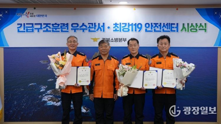 광장일보 주재영 기자 | 경북소방본부는 30일 본부 7층 소방작전회의실에서 ‘2025년 긴급 구조 훈련 평가 우수관서’와 ‘2025년 최강119안전센터’ 시상식을 개최했다.