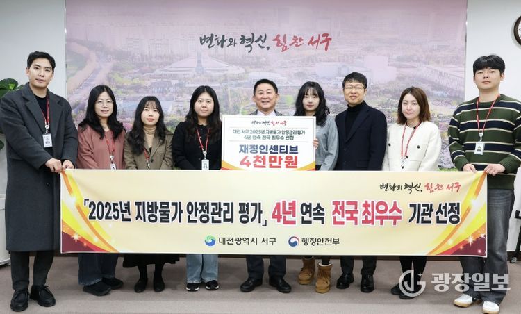 광장일보 이현나 기자 | 대전 서구는 행정안전부가 주관한 ‘2025년 지방 물가 안정 관리 평가’에서 최우수’ 기관으로 선정됐다고 31일 전했다.