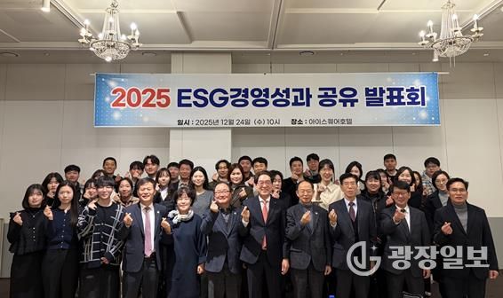 광장일보 주재영 기자 | 김해시도시개발공사는 지난 24일 김해 아이스퀘어호텔에서 시민과 지역사회, 내·외부 이해관계자 50여 명이 참석한 가운데 ‘2025년 ESG 경영성과 공유 발표회’를 성황리에 개최했다고 밝혔다.