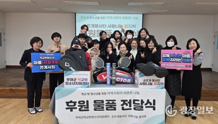 부여군학교밖청소년지원센터 관계자는 “지역사회의 따뜻한 나눔이 학교 밖 청소년의 일상과 성장으로 이어지고 있다.”라며, “앞으로도 지역사회 자원 연계를 통해 지속 가능한 협력 모델을 확대해 나가겠다.”라고 밝혔다.