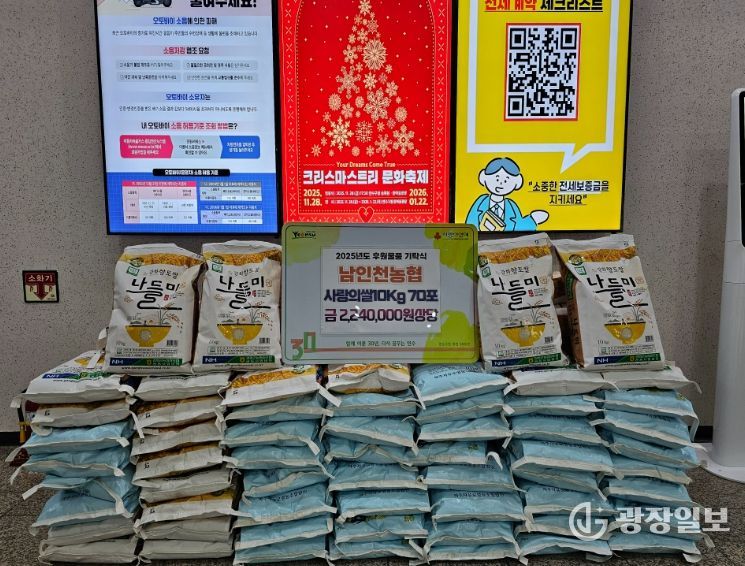 이에 앞서 지난 29일에는 남인천농협(조합장 이태선)이 겨울철 추위와 경제적 어려움으로 이중고를 겪고 있는 소외된 이웃을 돕고, 지역사회 나눔 문화를 확산하기 위해 ‘사랑의 쌀’ 70포(700kg)를 기탁했다.
