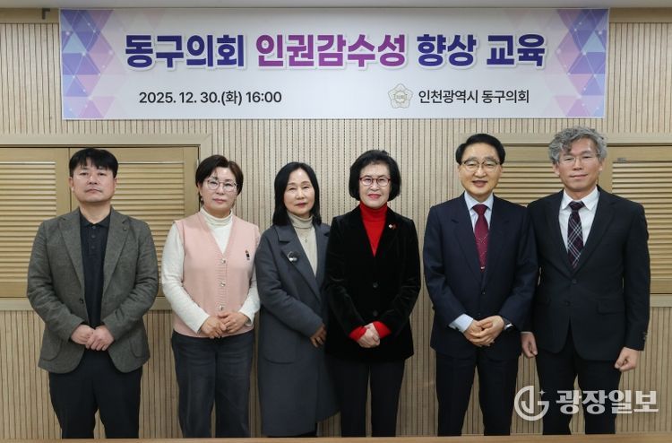 광장일보 주재영 기자 | 인천 동구의회는 지난 30일 의회 세미나실에서 구의회 의원과 의회사무과 공무원을 대상으로 인권감수성 향상 교육을 실시했다.