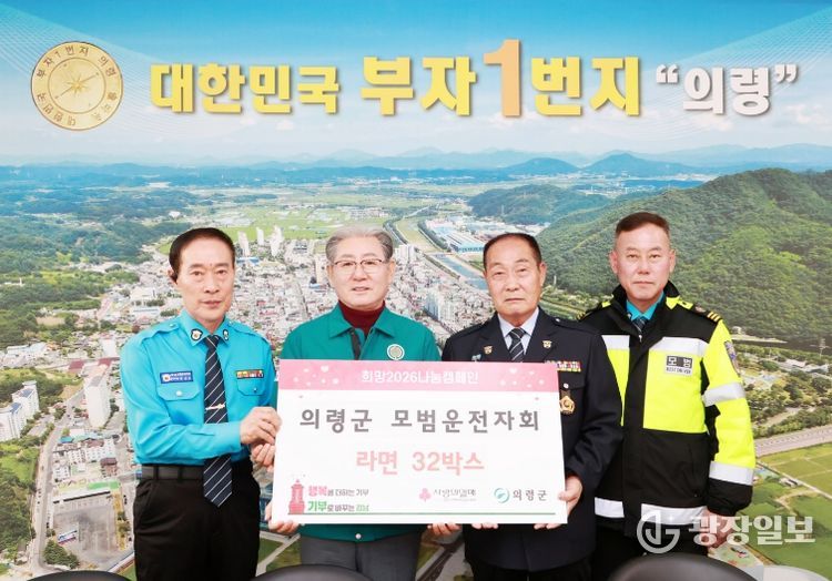 광장일보 주재영 기자 | 의령군은 지난 30일, 연말 이웃돕기를 위해 의령군 모범운전자회가 라면 32박스(100만 원 상당)를 기탁했다고 밝혔다.