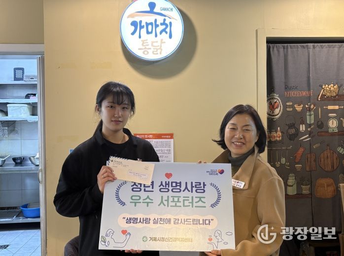 활동 실적과 참여도, 생명존중 가치 확산 기여도 등을 종합적으로 고려해 최종 선정된 우수 참여업소는 가마치통닭수월점(대표임미정), 유가네닭갈비수월점(대표 김규태)이며, 개인 우수 서포터즈로는 거제대 학생인 윤효진, 김석엽 씨가 선정됐으며 소정의 기념품도 함께 전달했다. 우수참여자들은 “작은 관심이 누군가의 삶에 큰 힘이 될 수 있다는 것을 느꼈다”며 소감을 전했다.