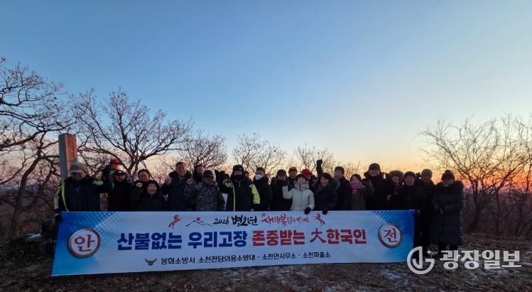 광장일보 주재영 기자 | 소천면 산악회와 의용소방대는 1월 1일 청옥산에서 새해를 맞이하는 해맞이 행사를 개최하여 희망찬 새 출발을 알리고 산불 예방 캠페인도 실시했다.