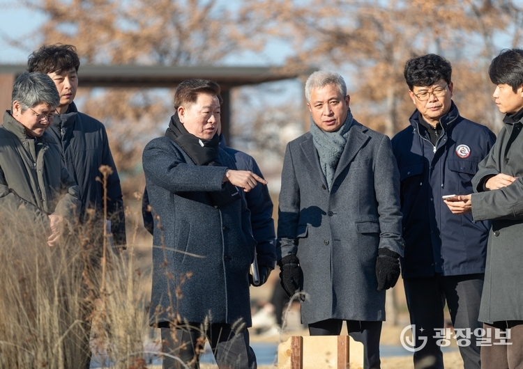 박승원 광명시장은 지난 5일 안양천 지방정원 시범사업구간을 방문해 정원 조성 성과와 이용 현황을 점검하고, 향후 본 공사 구간의 조성·운영 방향을 논의했다. 시범구간은 광명교부터 철산대교 방향 약 1㎞ 구간으로, 브라이트로즈정원과 시민참여정원을 중심으로 시민 이용 여건과 관리 실태를 살폈다.