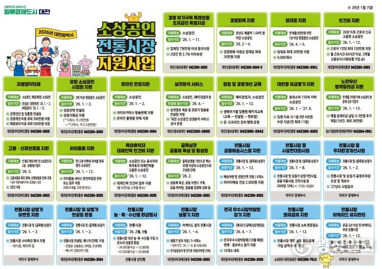 이장우 대전시장은 “올해 소상공인 지원사업은 신속한 지원, 신청 편의성, 현장 체감도를 핵심으로 추진하겠다”며 “신청 절차를 최대한 간소화해 소상공인이 장사에만 집중할 수 있는 환경을 만들고, 전통시장과 상점가에 활력이 돌도록 최선을 다하겠다”고 강조했다.