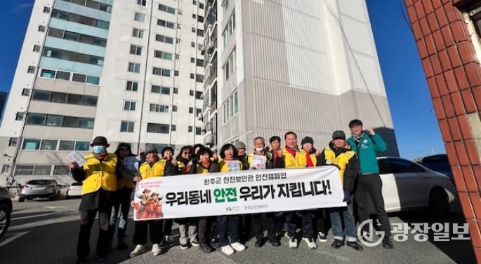 또한 완주군 안전보안관들은 아파트 입주민을 대상으로 화재 시 피난 행동 요령과 전기 사고 예방 수칙 등이 담긴 홍보 리플릿을 배부하며 겨울철 화재 예방 캠페인을 함께 전개했다.