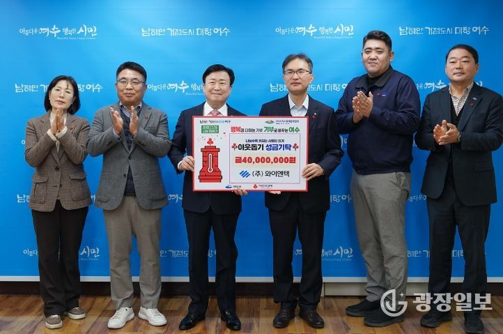 광장일보 주재영 기자 | 여수시는 지난 6일 ㈜와이엔텍(대표이사 박지영)이 저소득 취약계층 지원을 위해 성금 4천만 원을 희망2026나눔캠페인 성금으로 기탁했다고 밝혔다.