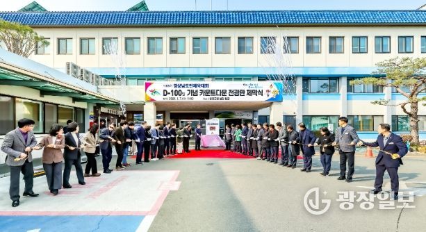 보고회 이후 참석자들은 군청 본관 현관으로 이동해 대회 D-100일 기념으로 카운트다운기 제막식을 열고, 한마음으로 대회의 성공적인 개최를 기원하며 준비 분위기를 한층 끌어올렸다.