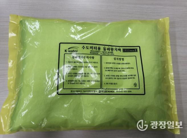 동파방지팩은 스티로폼 조각과 방습제를 비닐팩에 담아 밀봉한 보온용 자재로, 수도계량기 위에 덮은 후 뚜껑을 닫아주기만 하면 공기 흐름을 차단해 계량기 동파를 효과적으로 예방할 수 있다.