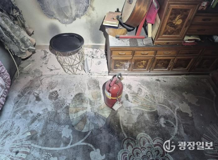 소방대원들이 현장에 도착했을 때는 화재는 진화된 상태였으며, 커튼 및 침구류 등 일부 소실됐지만 소화기로 초기 진압한 덕분에 더 큰 재산피해는 막을 수 있었다.