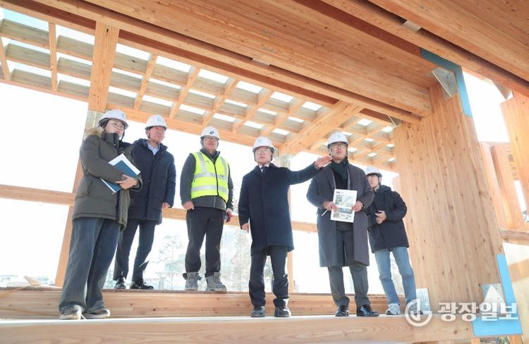 이번 점검은 국산목재를 활용한 목조건축물과 목재특화거리 조성 현황을 직접 확인하고 공정 관리와 안전 확보 상황을 살피기 위해 마련됐다. 현재 목재친화도시 조성사업은 주요 시설 공정률이 80%대를 보이며 준공을 앞둔 단계다.