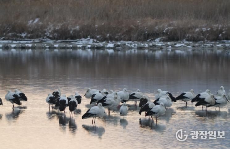 광장일보 주재영 기자 | 고창군이 해리천 일원에서 환경부 멸종위기종 1급이자 천연기념물인 황새 무리가 역대 최대 규모인 80여 마리나 월동 중인 것으로 확인됐다고 9일 밝혔다.
